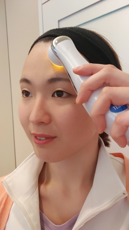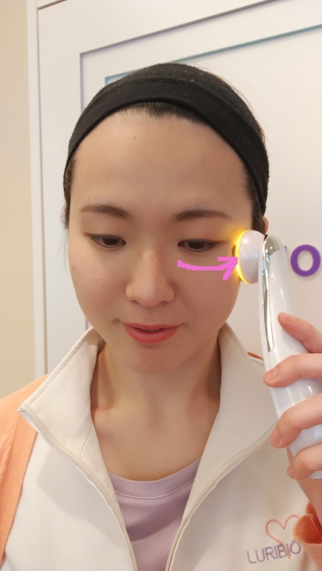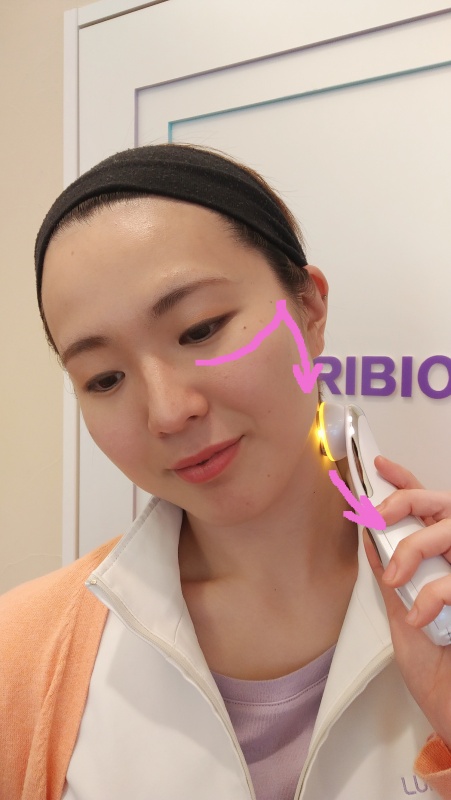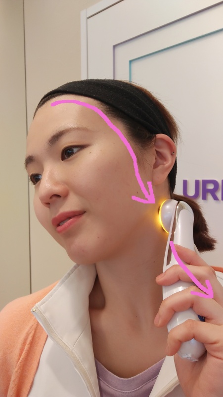 小ワザ②レベルを1に合わせ、お顔の上から鎖骨に向かってリンパを流していきます