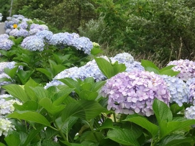 忍野村と富士吉田市をつなぐ国道717号線の道沿いに700mほどに渡って紫陽花が植えられていて梅雨の間綺麗に咲き、楽しませてくれます。まだ見ることが出来ますがまた一年しばらくの間お別れになります。