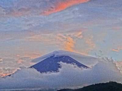 雨は昼から止みはじめ、雲が切れ富士山も姿を見せて青空も少し現れて西日も射してきましたよ。