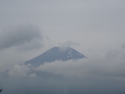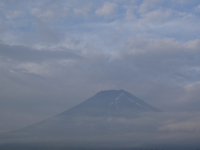 今日は暑くいいお天気だった昨日とはうって変わって白い雲に覆われた富士山麓です。