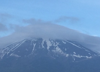 今日は曇り空で富士山に笠雲が掛かっています。