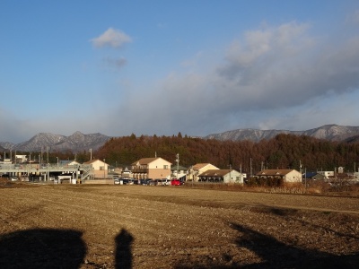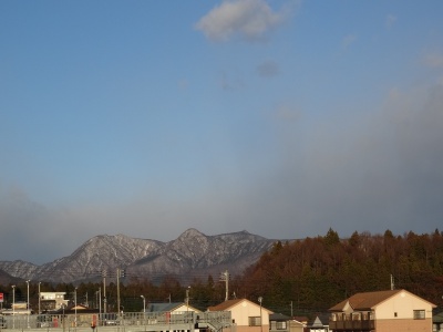 また富士五湖地域を囲んでいるような御坂山地の山々には薄く雪がまぶされているように見えます。