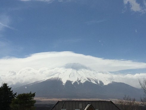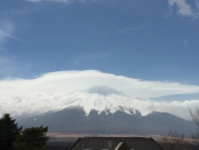 富士山は頭に雲をのせていましたが裾野まで見えていましたよ。