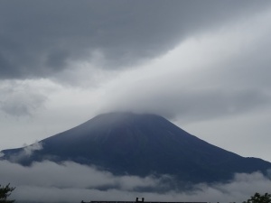 富士山にも笠雲が掛かってきました。にかい笠のようです、やはり雨が降るでしょうか。