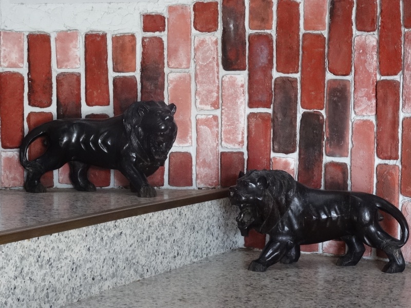 最後に階段の途中にはシーサーならぬ2頭の獅子が皆様をお迎えしております。