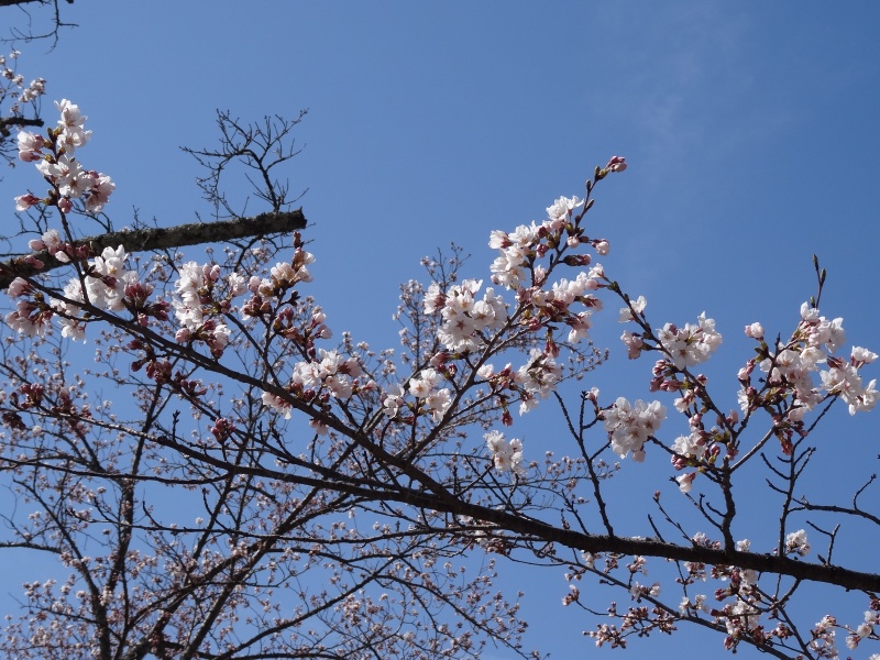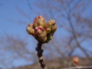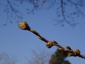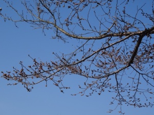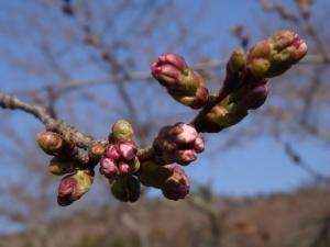 桜の蕾は少し花が見えてきました。もう少しのようです。