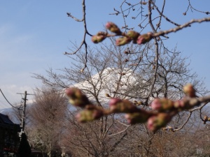 お隣富士吉田市は標高差でしょうか今もう一足先に桜が開花しています。