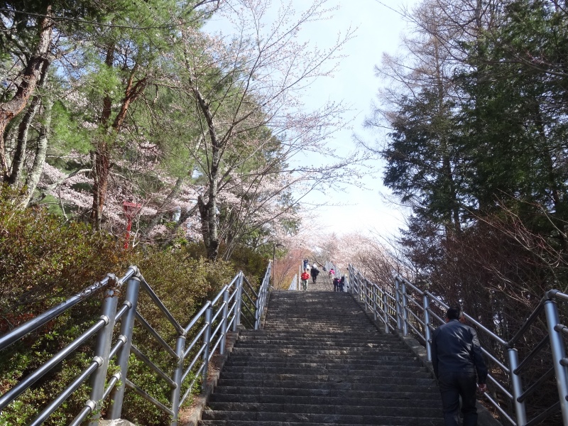 こちらはご存知の方も多いと思いますが、新倉山浅間公園の中にあります。ソメイヨシノが植栽されていて、通称『忠霊塔』からの桜と富士山の眺めは絶景で関東富士見百景のひとつにも選ばれています。石の階段(397段)を登って行きます。(普通の道もございます)