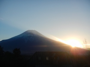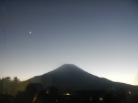 昨日の夕方日の入りを撮ってみました。頂上ではないのでダイヤモンド富士とはいきませんが夕闇に沈みゆく富士と消えかける夕陽の光のコントラストがちょっとだけ綺麗でした。