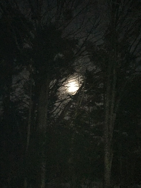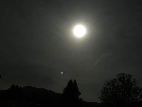 こちらでは昨日日中夕方にかけて空が曇り始め雲も広がっていましたが夜には少し薄れお月様も出てきました。いつもより大きく光り輝いてみえました。