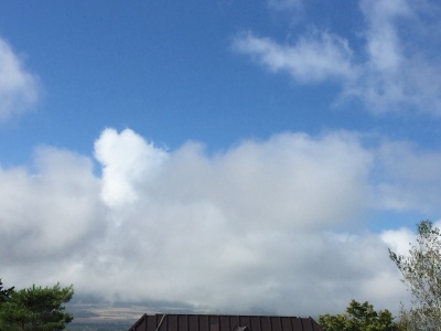 雲が多く富士山も隠れていますが青空の広がっている富士北麓です。