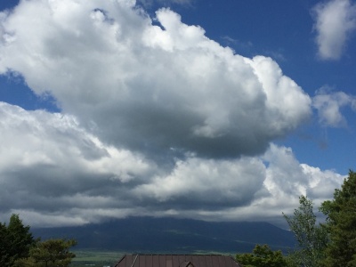 朝から曇り空の富士北麓ですが少し富士山は見えました