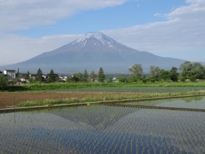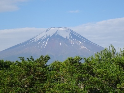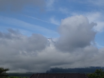 今日は朝から晴れていましたが雲が多く富士山は頂上をちょっとだけ覗かせていた北富士山麓です。