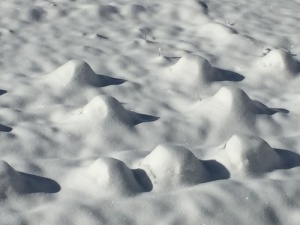 工場のラベンダー畑も苗の形にこんもりと積雪しています。