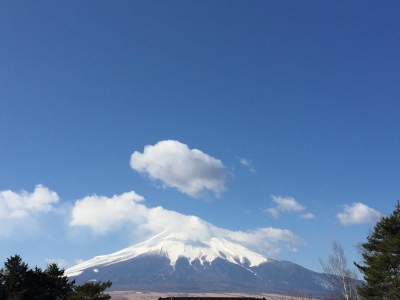 若干雲がありますが雨雲雪雲ではなさそうで、春の雲が富士山と戯れているような感じです。