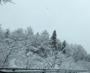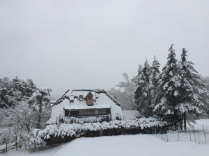 昨日から雪が降り続け、今日も15cm程の積雪の富士北麓です。