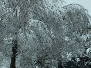 しだれ桜にも雪が重くのしかかり、更に “しだれ” ています。
