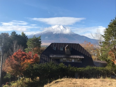 晴れ一時雨 最低気温 6℃ 最高気温 12℃ 紅葉と雪の富士山はきれいです! 今は不思議な雲がかかっています!