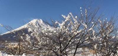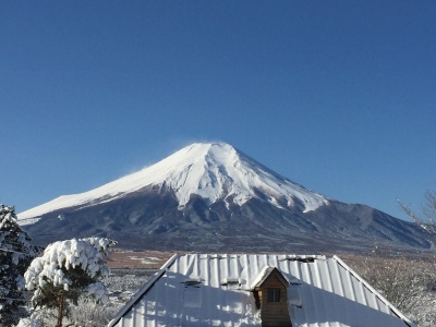 今朝は冬晴れで北風は冷たいですが青空に富士山と銀世界が綺麗に見えていました。