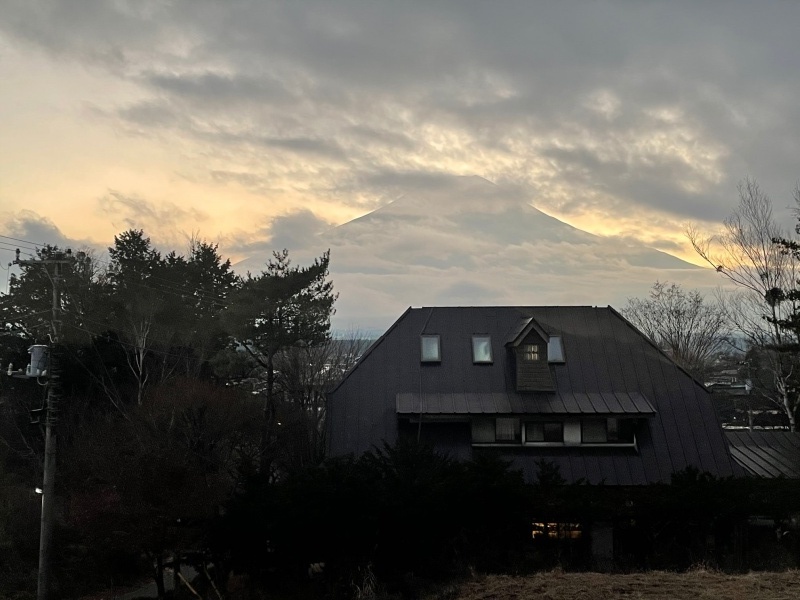 曇り 最低気温 3℃ 最高気温 10℃ 淡い夕焼けの富士山です。