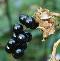 秋に花後についた果実が熟してはじけ、中から艶やかな黒い種が現れます。