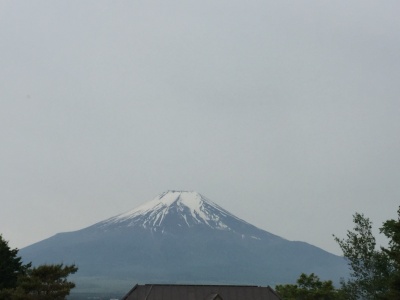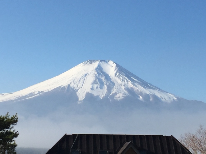 朝霧が立ち込める中、見える富士山は荘厳さを感じさせました。