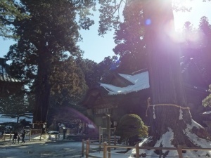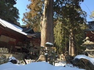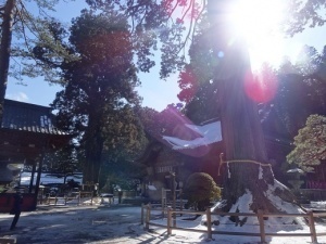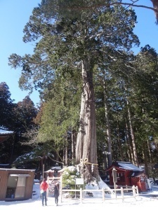 杉の大木「の反対側、拝殿の右にそびえ立っている檜です。