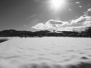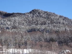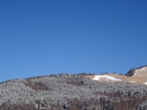 夏に八文字焼きが行われる高座山の茅野の刈り込みの部分にも八の形で雪が積もっています。