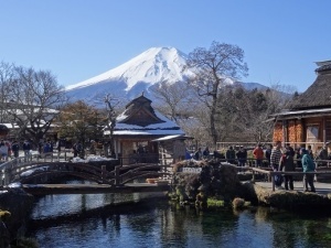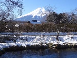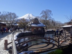 透き通る富士の湧水で出来た池と雄大な富士山と先日の雪をたたえたひなびた景色を皆さん飽きることなく眺めていらっしゃいました。