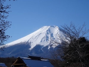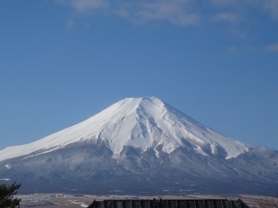 富士山も雪をかぶった裾野まで姿を現し青空も見えています。