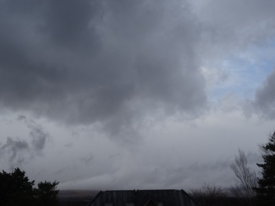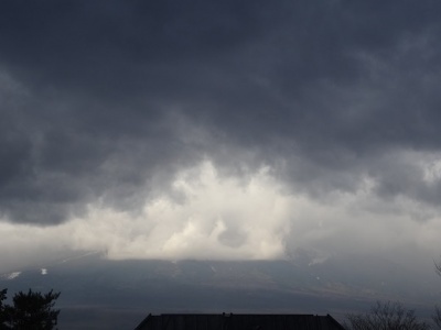 今朝は雨降りの富士山麓で雲がいくつか重なって間から少し青空がのぞいていました。