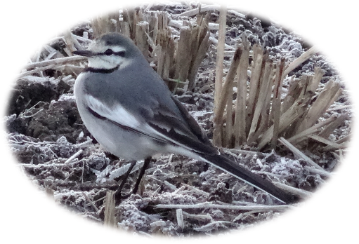 稲刈りを終え休眠に入った霜の降りた田んぼのわらの上にちょこんとたたずんでいました。