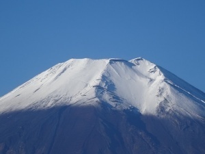 冷たい空気の中、富士山は凛として佇んでいます。