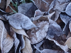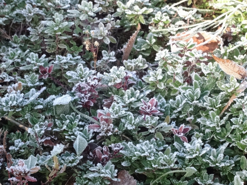 工場のタイムの葉にも霜が降りていました。