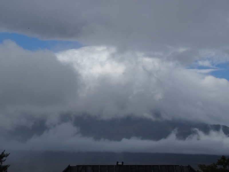 朝になって小雨に変わり、今は青空も広がりそうです。富士山も最初は雲に覆われていましたが徐々に雲が割れ少しずつ姿を現してきました。昼過ぎ位までまだ関東では雨に注意が必要だそうです。西日本から少しずつ回復していくようですが北日本などはこれからも強く降るみたいですね。まだ今日はどちらも気を付けた方がよいようです。ご注意ください。