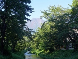 御宮橋からの新名庄川と富士 ’14 8月