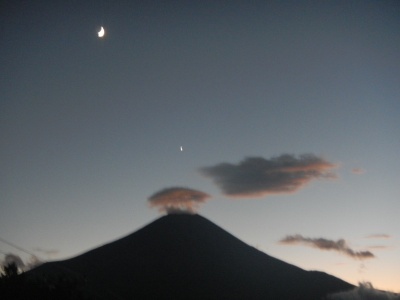 夕暮れ、月と星が輝いていたので撮ってみました。わかりづらいと思いますが、、、。