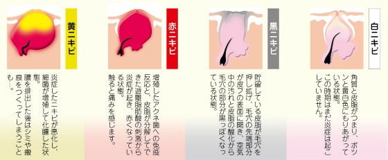 出来てしまったニキビや吹出物が、より化膿したり肥大したり、またシミや凸凹などの痕にならないよう、早急にケアしましょう!