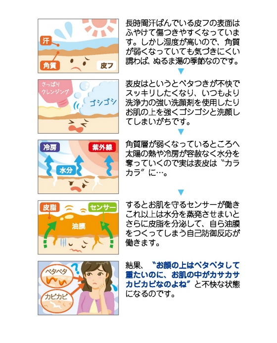 夏もエアコンなどによるお肌「カピカピ乾燥肌」はもちろんのことお肌「ベタベタの隠れ乾燥肌」にも気を付けましょう!